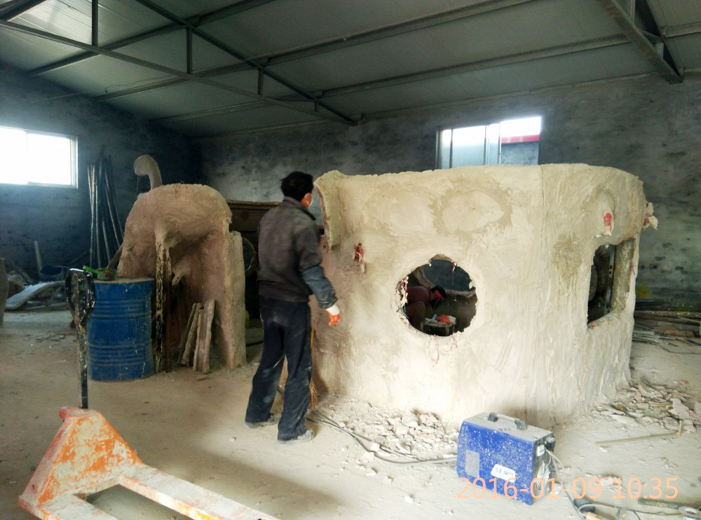大型玻璃鋼游樂船雕塑竣工。2016年1月15-1月19日安裝于山東省濱州市黃河五路渤海十路銀座商城黃河店四樓。