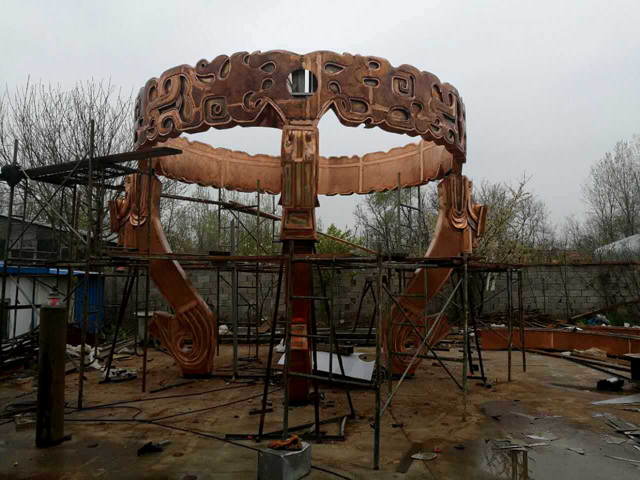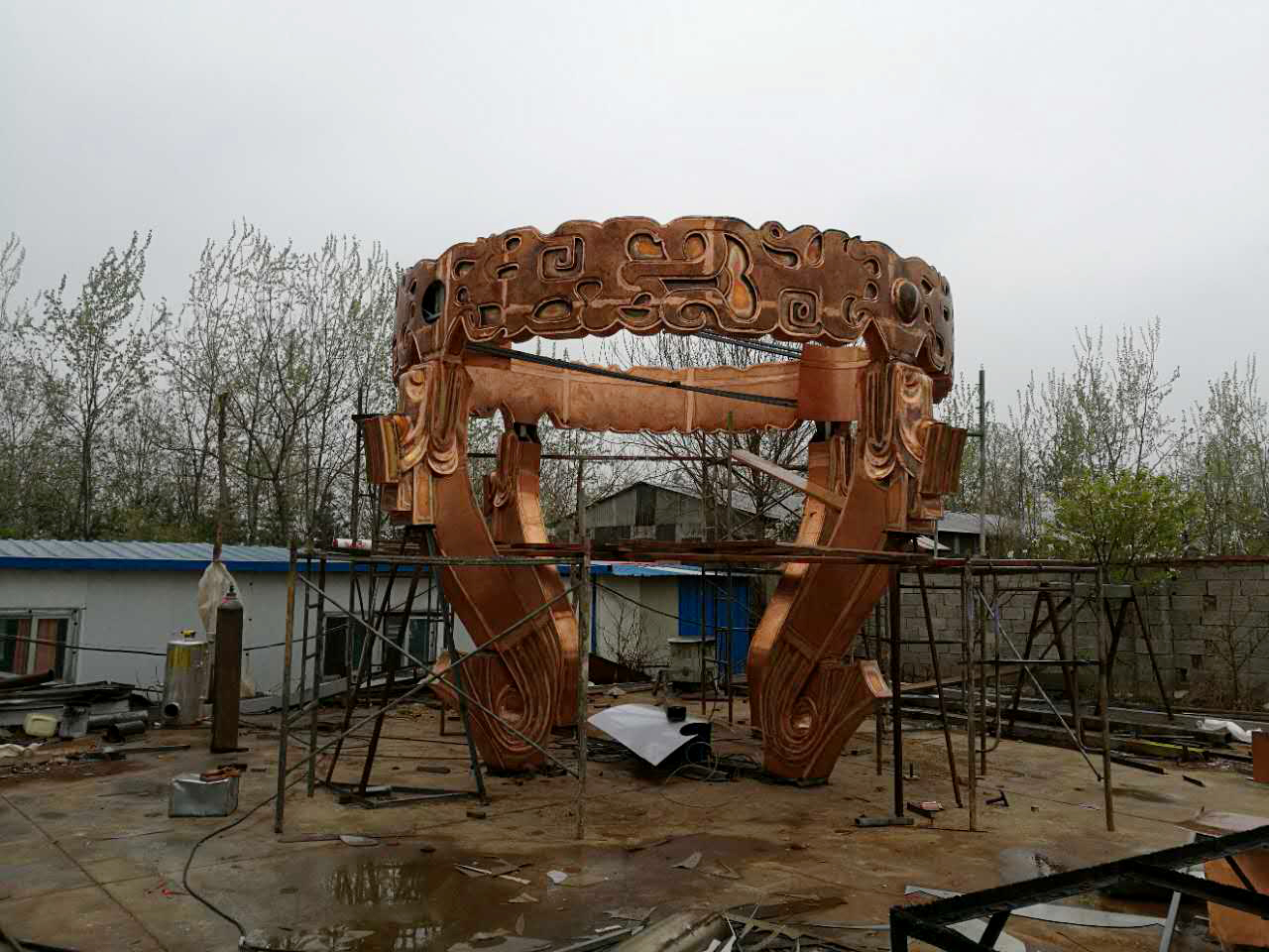 簡(jiǎn)要技術(shù)要求:鍛銅渾天儀景觀小品設(shè)計(jì)、制作與安裝,采用厚度1.5-2.0mm紫銅鍛造。
