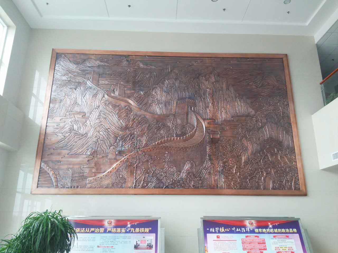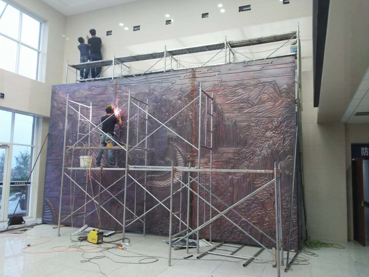 大型鍛銅浮雕——長(zhǎng)城安裝完成。