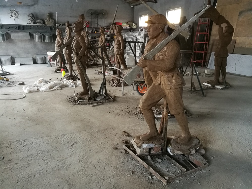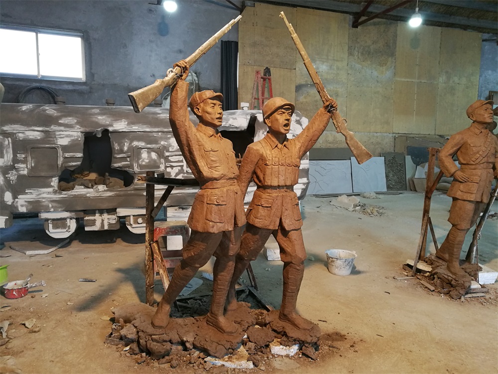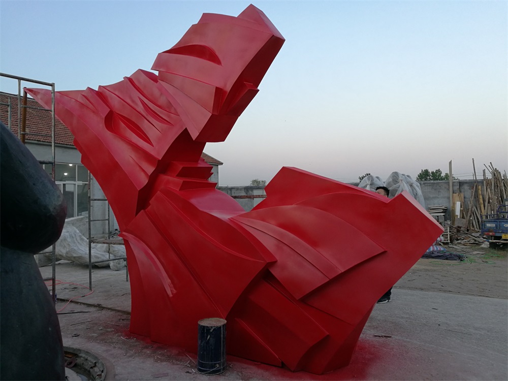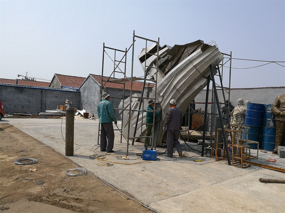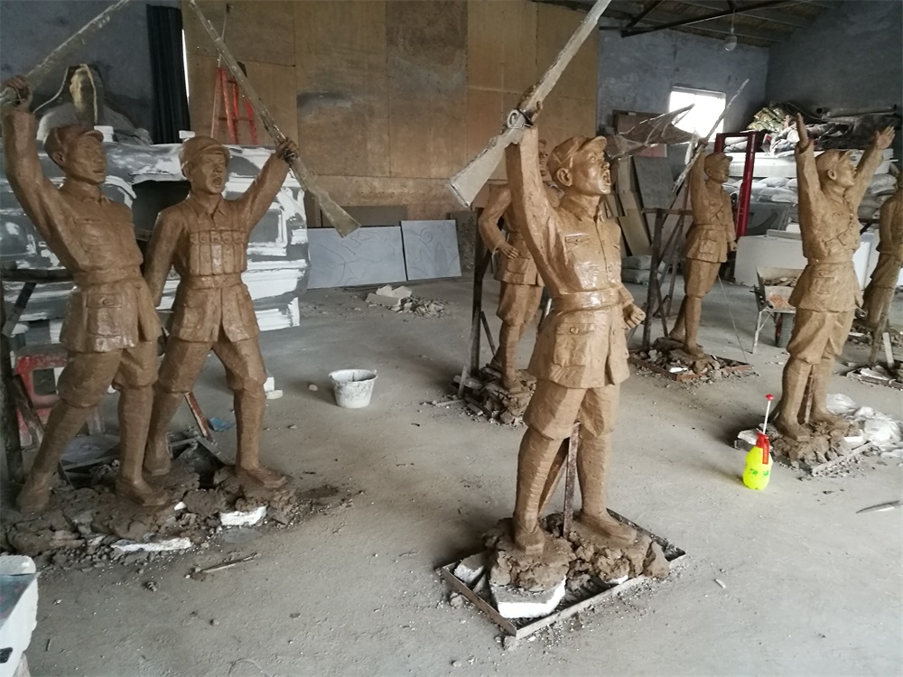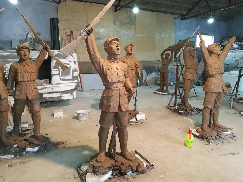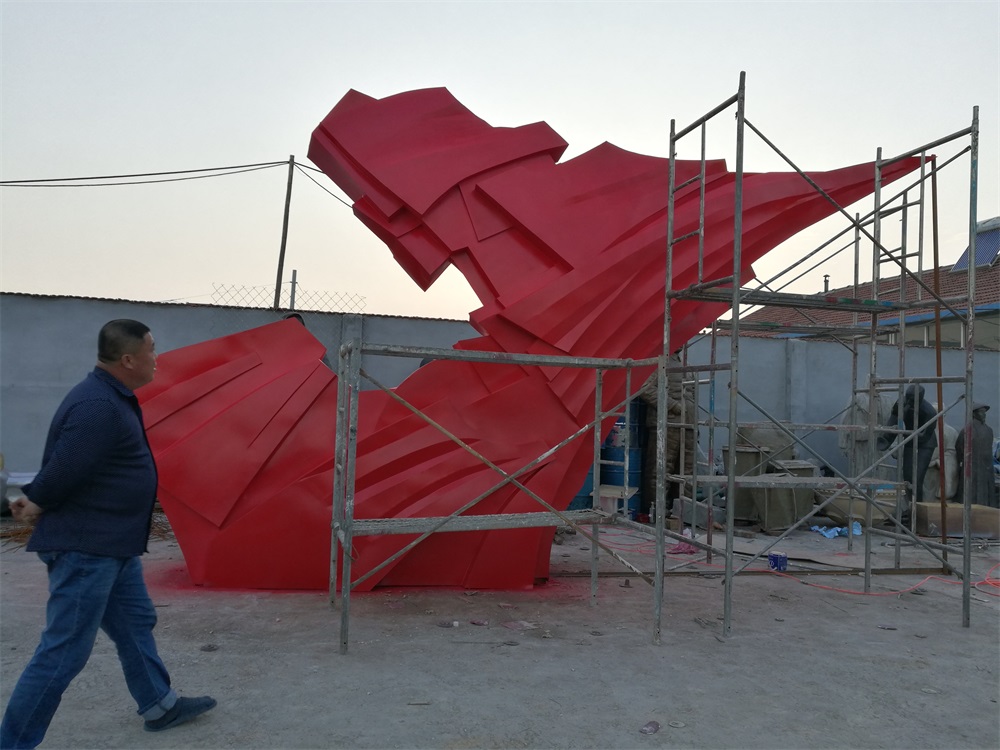 雕塑說明:紅旗雕塑采用不銹鋼鍛造工藝做型,高4米,長(zhǎng)8米。人物群雕共10個(gè)人物,采用玻璃鋼工藝制作。