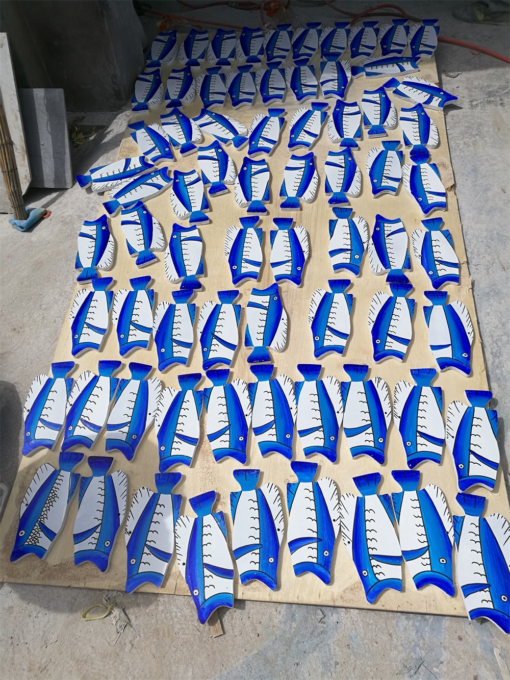 雕塑說明:該項目包含了1300個海星雕塑(內(nèi)置燈光),35個船舵雕塑,3個船錨雕塑,62個海魚雕塑,70個海鳥雕塑,16個救生圈模型,6個船槳造型以及一些其他海洋題材雕塑。
