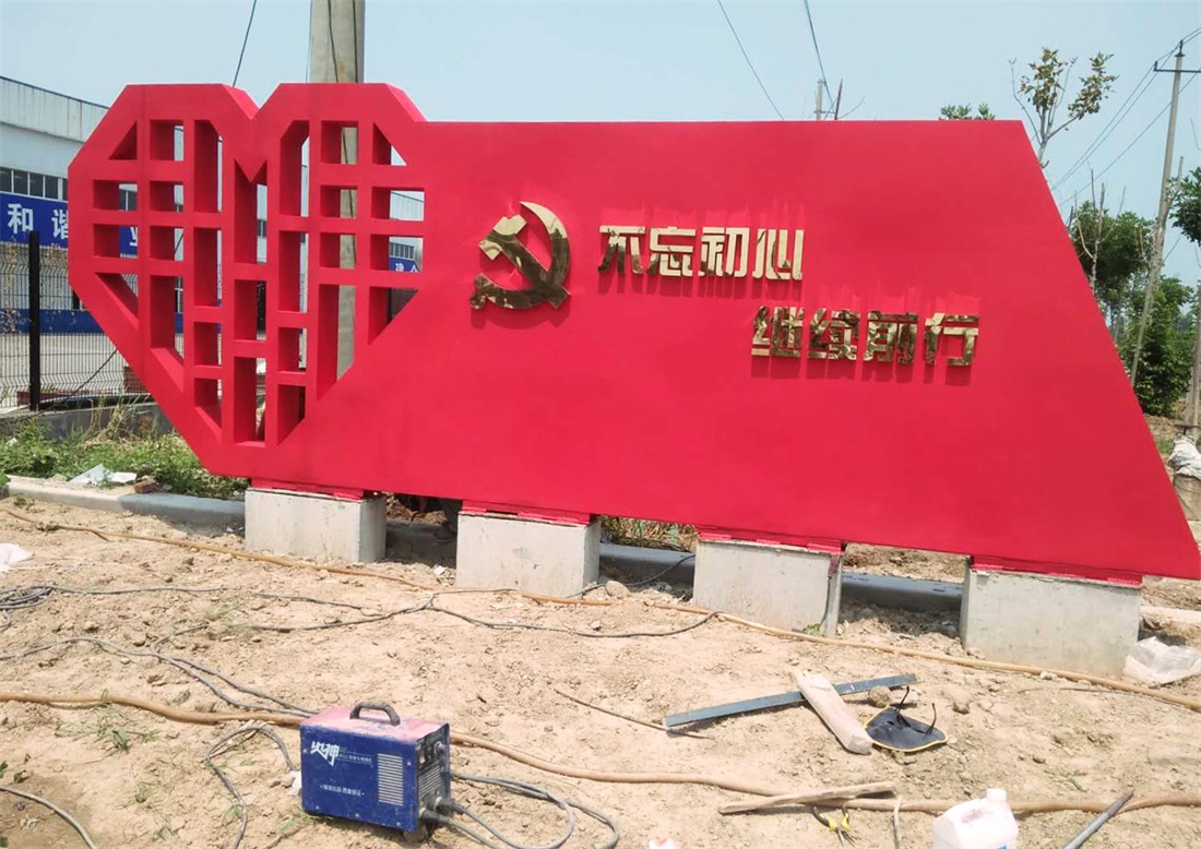 1、雕塑材質(zhì):表層2mm厚鍍鋅板,內(nèi)置金屬骨架并做防腐處理,表面噴涂氟碳漆。文字及黨徽為鈦金字。