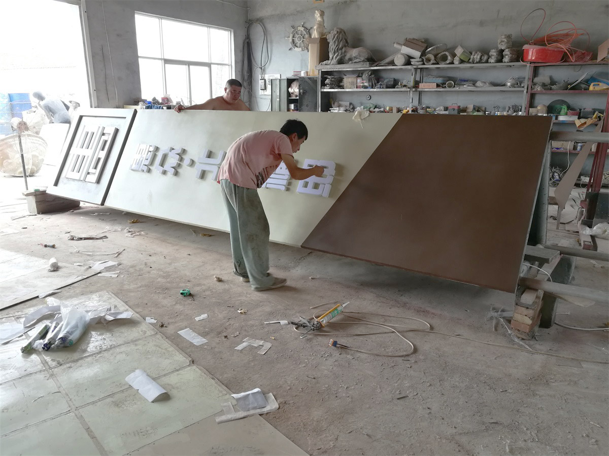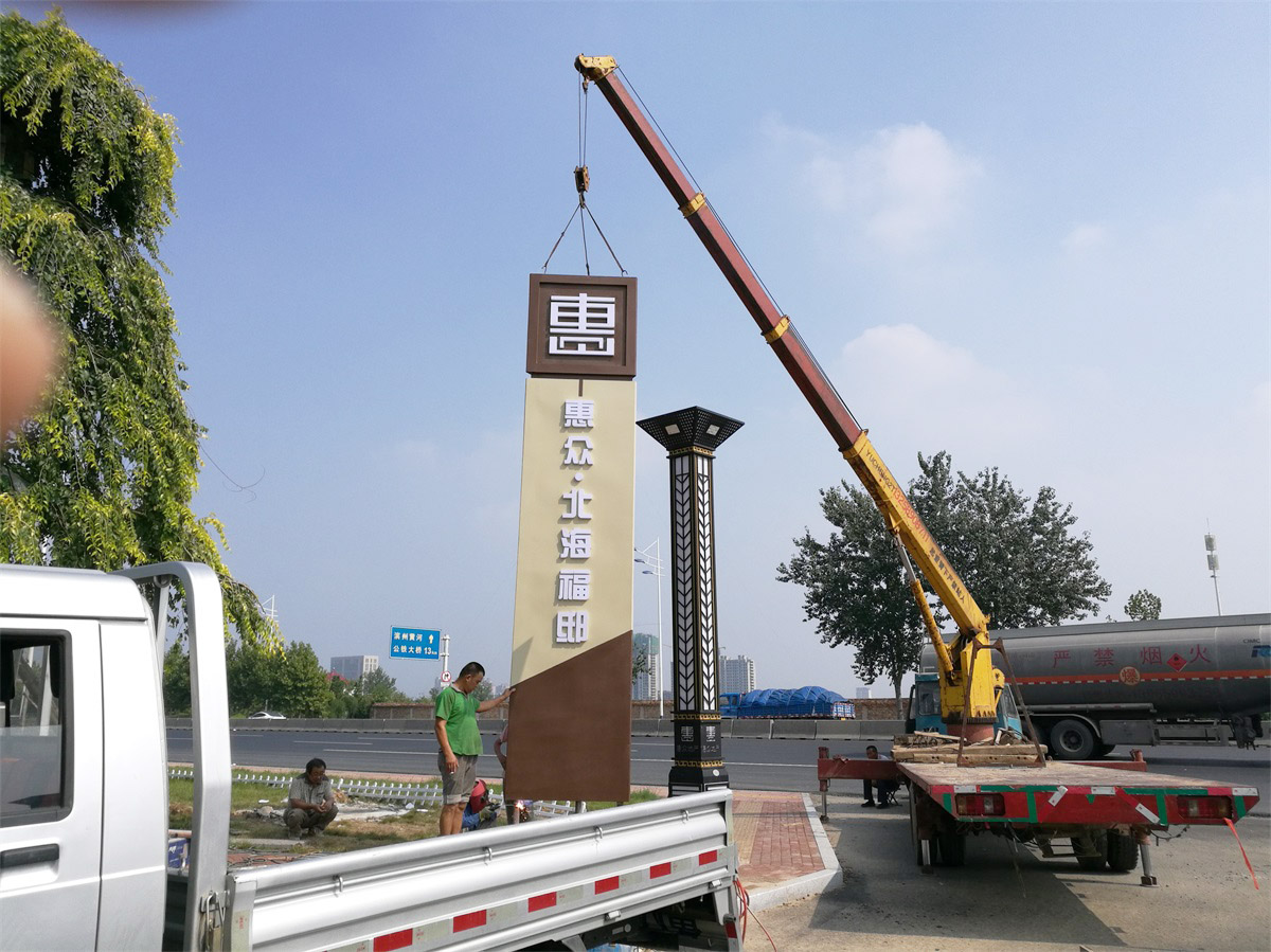制作工藝:內置金屬結構骨架,鍍鋅板鍛造成型,表面噴涂氟碳漆,logo及文字為發(fā)光字。
