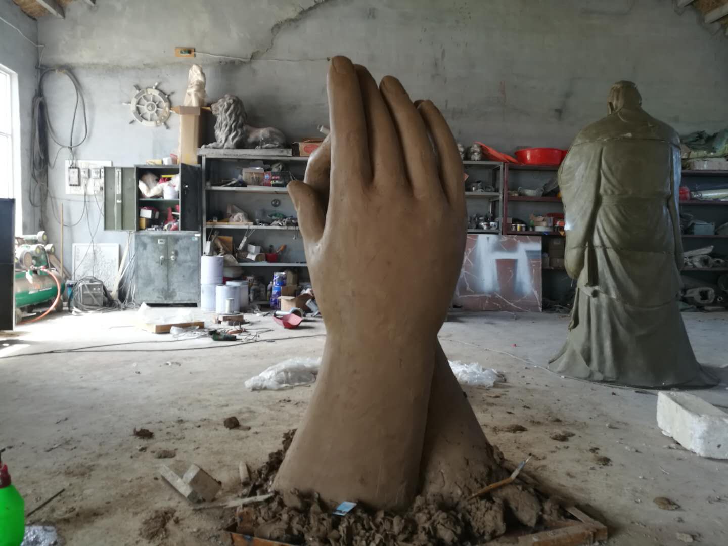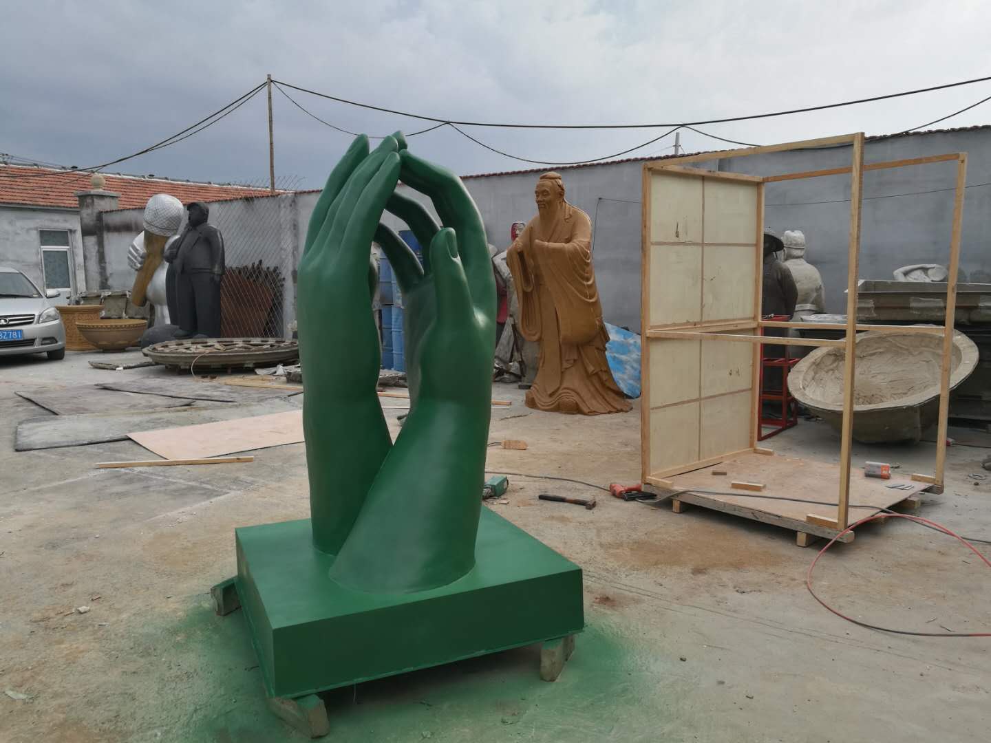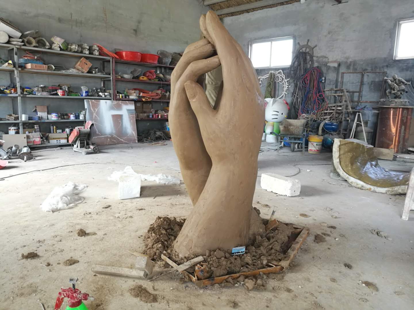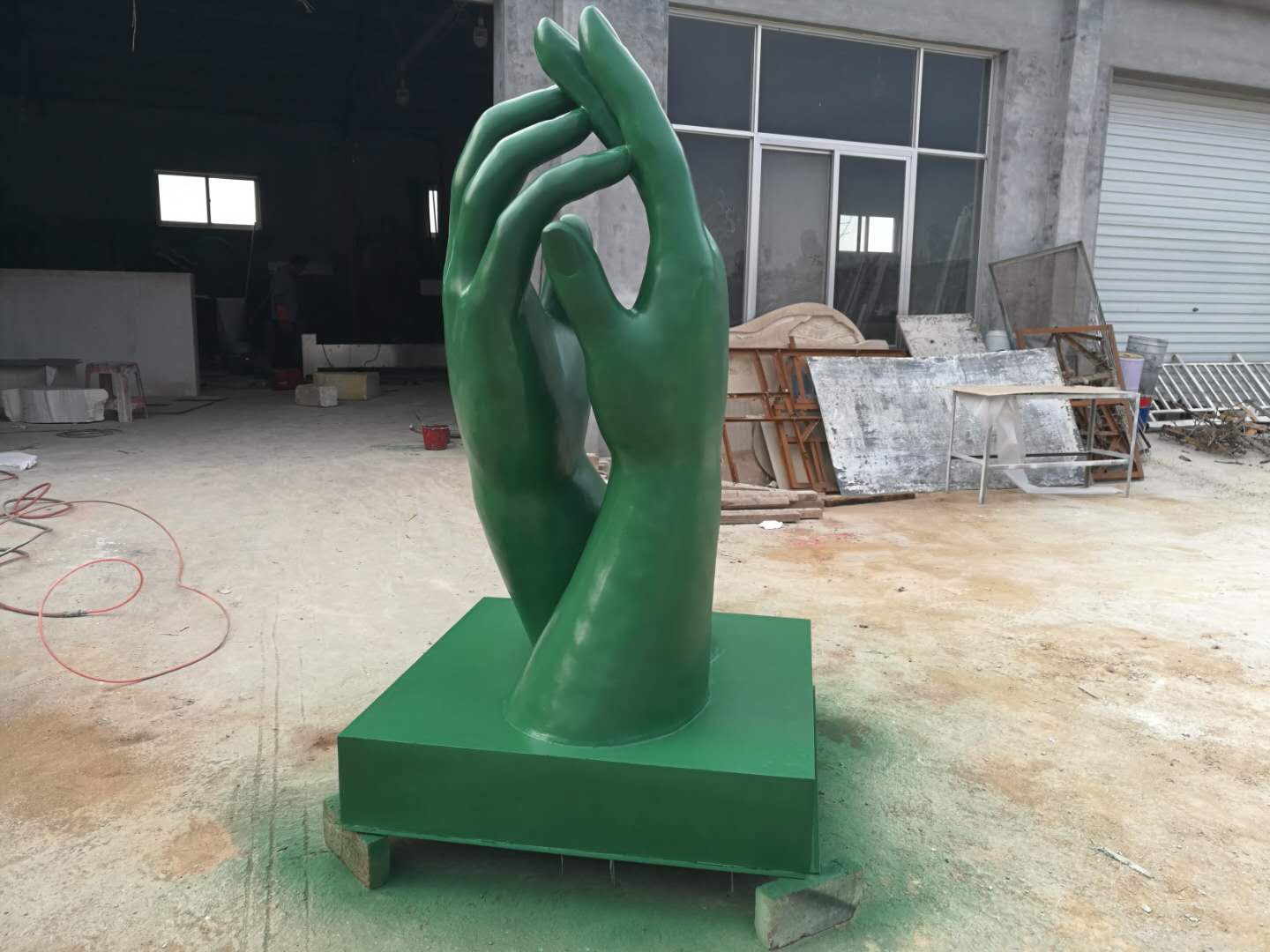 玻璃鋼雙手雕塑完工。