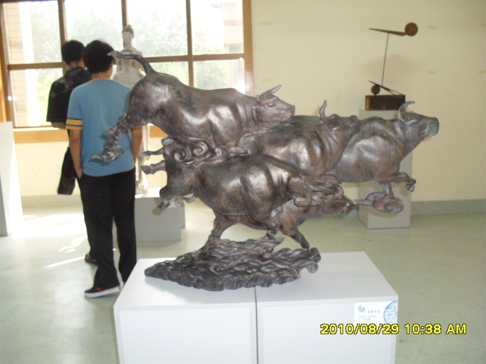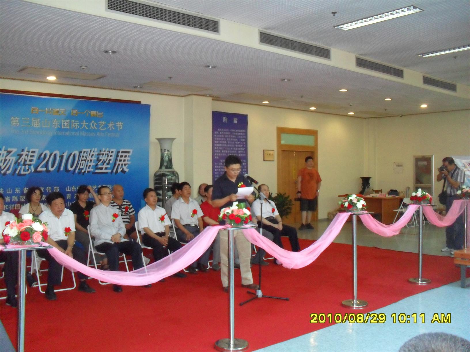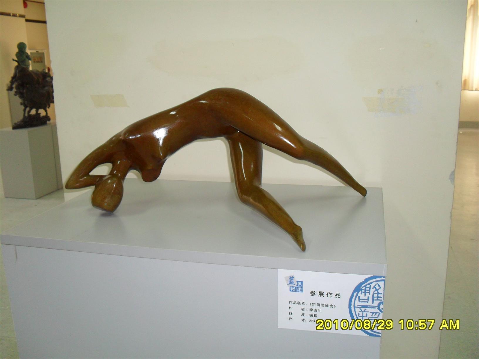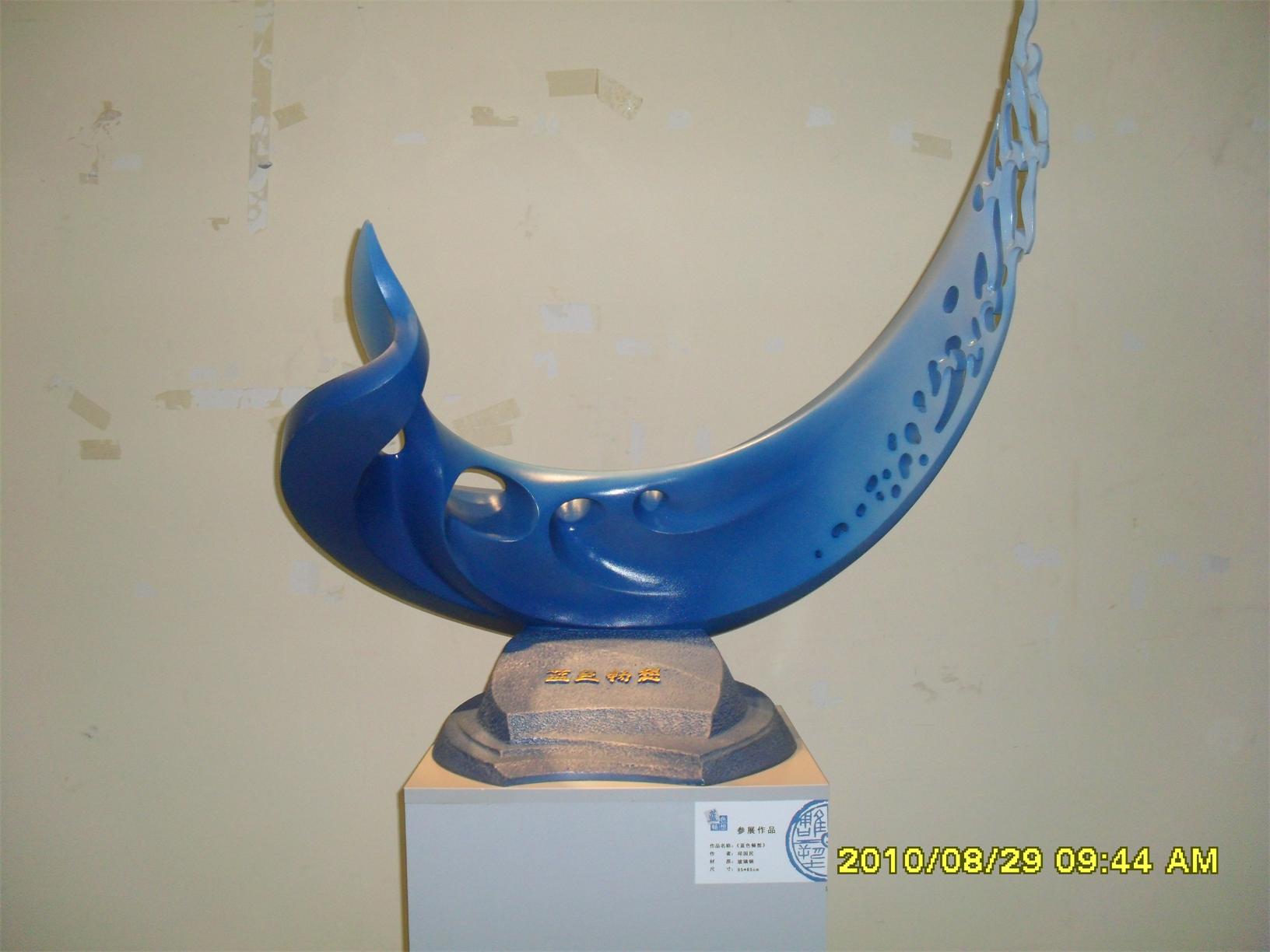 藍(lán)色暢想2010雕塑,2010年8月29日,由中共山東省委宣傳部、山東省文學(xué)藝術(shù)界聯(lián)合會主辦,山東省雕塑藝術(shù)家協(xié)會、青島雕塑家協(xié)會承辦的第三屆山東國際大眾藝術(shù)節(jié)--藍(lán)色暢想2010雕塑展在山東省圖書館隆重開幕。 "藍(lán)色暢想2010雕塑展"吸引了省內(nèi)外大批中青年雕塑家的參與,展覽共收到101位雕塑藝術(shù)家的126件入圍作品。其中省內(nèi)中青年雕塑藝術(shù)家占絕大多數(shù),圍繞"藍(lán)色"主題,堅持創(chuàng)造、創(chuàng)新理念,創(chuàng)作了大批優(yōu)秀的雕塑藝術(shù)作品,語言生動,內(nèi)容多樣,借助不同材質(zhì)和多元化的藝術(shù)風(fēng)格,對藍(lán)色精神進(jìn)行了深入的闡釋。李友生的《海風(fēng)倩影》、王未的《藍(lán)色暢想》、譚信國的《蘋果系列》等作品,均對雕塑藝術(shù)內(nèi)涵進(jìn)行了深入的探索。